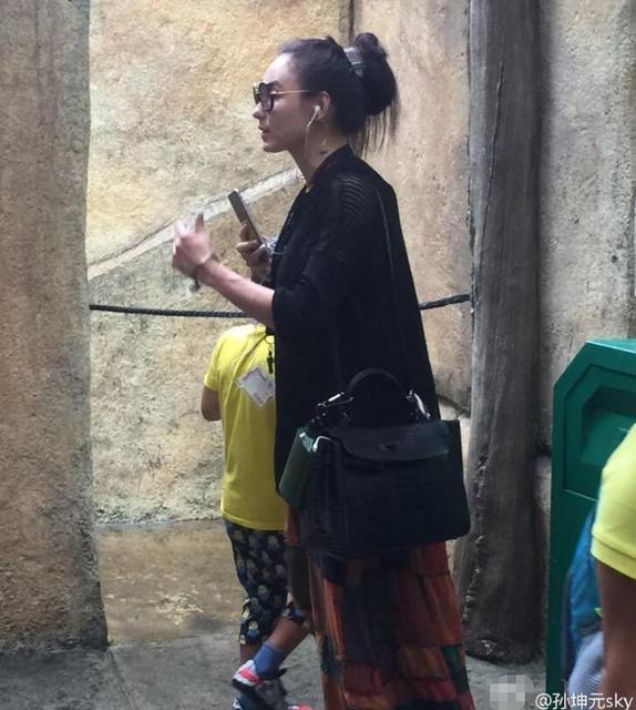 张柏芝戴着一个黑色墨镜。